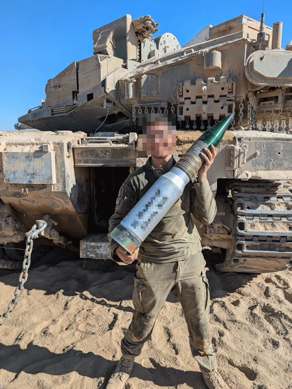 以军士兵手持M339尾翼稳定多用途榴弹,其身后是梅卡瓦坦克社交媒体