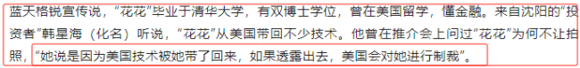 为了迷惑更多人投钱,“花花”将自己伪装成高端人才,编造她是高学历,毕业于清华大学,有双博士学位,曾在美国留学,精通金融,能从小道消息获得不少暴富技巧……