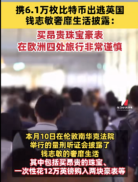 钱志敏人如其名,一心向钱看,在中国利用另类“庞氏骗局”般的圈套,非法集资了数百亿元,而后暴雷,她带着诈骗到的所有钱财兑换到的6.1万枚比特币,乔装打扮潜逃至英国,自此过上挥金如土的奢靡生活。
