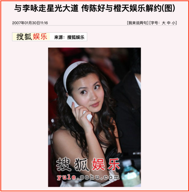 2007年,网上盛传华谊的范某某“不满周迅一姐上位,准备投奔橙天怀抱”。与此同时,“橙天一姐”陈好解约的消息,也传得沸沸扬扬……