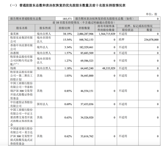 牧原食品最大的股东是秦英林,持有公司38.19%的股份比例,其配偶钱瑛直接持有1.18%的股份比例,夫妻二人合计持有39.37%股份比例。由此计算,港股上市前这笔大规模分红,秦英林、钱瑛创始人夫妇约可直接分得至少19.69亿元的收益。