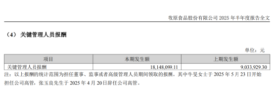 另据牧原股份2025年半年度报告,其关键管理人员的薪酬总额在本报告期已跃升至约1815万元,相较于上年同期的约903万元,增幅超过100%,实现翻倍。