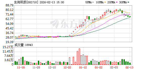2月23日,友邦吊顶公告称,上海明盛联禾智能科技有限公司(以下简称“明盛智能”)拟以29.41元/股的价格,向公司全体股东发出部分要约收购,计划收购股份数量1943.01万股,占公司总股本的15.01%。此次要约收购期限为2026年2月25日至3月26日。