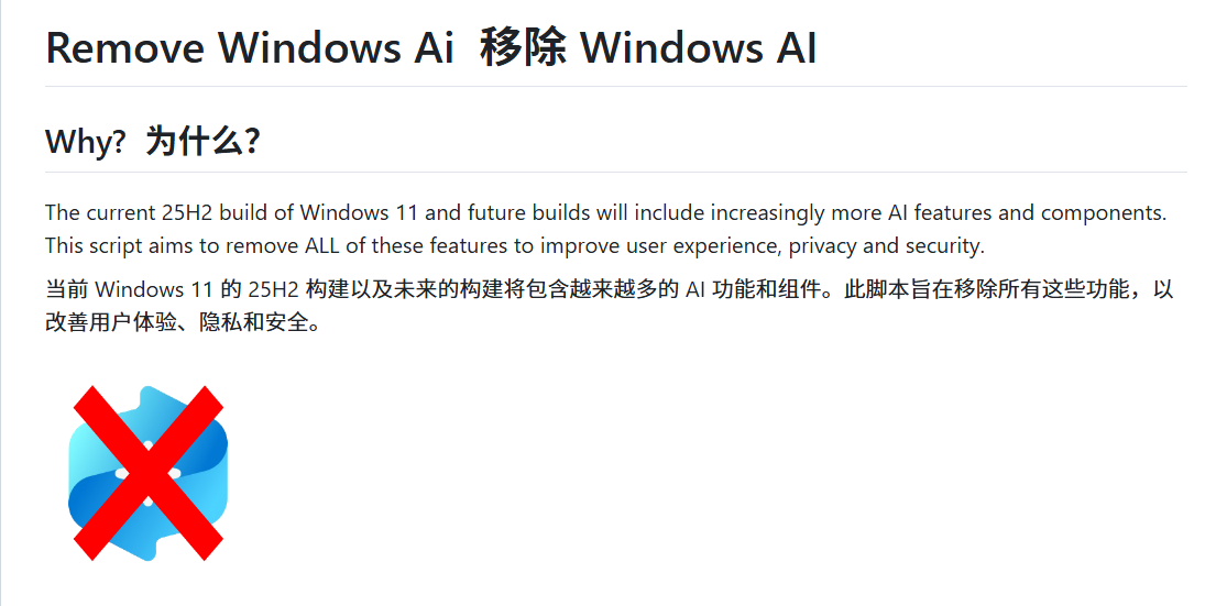 除了脚本处理的功能外,GitHub页面还提供了手动禁用其他AI功能(如Gaming Copilot)的指南,这些操作通常只需要简单的开关即可完成。
