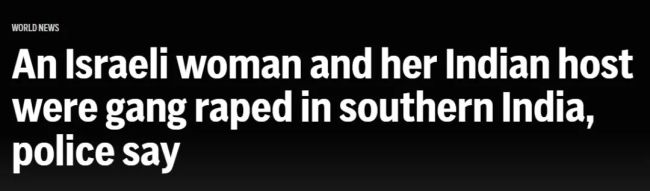 2025年3月,一名以色列女游客在南印度地区遭多人强奸,同行男游伴被推到河里。