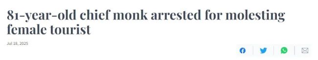 2025年7月,一位41岁的新西兰女游客在斯里兰卡Habaraduwa一座寺庙中,遭到一名81岁高级僧侣的骚扰,游客报案后当事人被捕。