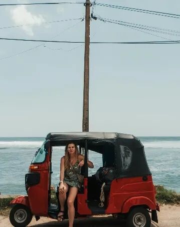 她在斯里兰卡开始为期数天的独自旅行,主要旅行工具是一直用当地的三轮车叫tuk-tuk(突突车)。
