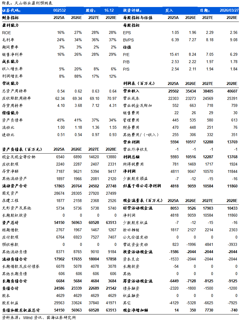 证券研究报告《天山铝业(002532)2025年年报点评:电解铝新项目贡献增量,铝价上涨推升业绩》