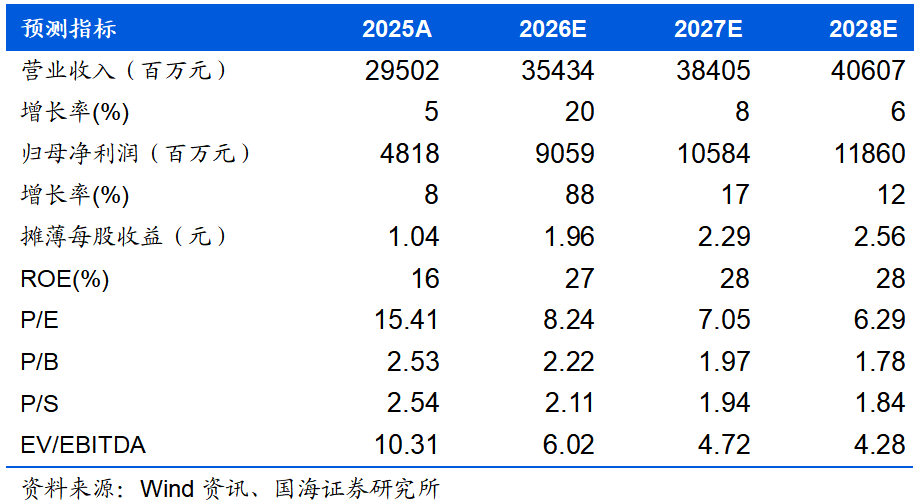 同时公司发布2026年一季度业绩预告:2026年第一季度,公司预计实现归属于上市公司股东净利润22.0亿元,同比+108%,扣非后归属于上市公司股东净利润21.85亿元,同比+110%。