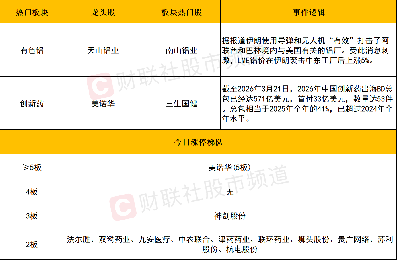消息面上,据报道伊朗使用导弹和无人机“有效”打击了阿联酋和巴林境内与美国有关的铝厂。受此消息刺激,LME铝价在伊朗袭击中东工厂后上涨5%。此外天山铝业公告,预计2026年一季度归母净利润22亿元,同比增长107.92%。若有色铝能够于后市走出持续正反馈,其余有色金属细分同样有望获得资金的回流修复。