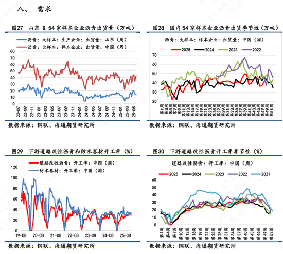 【2】现货市场:①山东重交沥青市场价为2960元/吨,环比-0.7%,7天累计-2.3%。山东基差为+44元/吨,7天累计+23元/吨。②华东重交沥青市场价为3190元/吨,环比持平。华东基差为+274元/吨,7天累计+43元/吨。