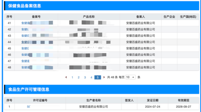 骆女士还向记者出示了其收到的“牡蛎锌镁硒片”。记者注意到,该产品包装盒标注为“特殊膳食”,品牌方为“庄凰(广州)大健康科技有限公司”,生产企业为“安徽百盛药业有限公司”,但外包装上既无保健品专属的“蓝帽子”标识,也未标注“国食健注”头的保健品批准文号。记者随后登录国家市场监管总局特殊食品信息查询平台检索该产品,未查询到任何相关注册备案信息。