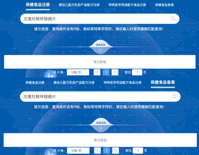 记者在生产厂家的保健食品备案信息中未查询到“庄凰牡蛎锌镁硒片”