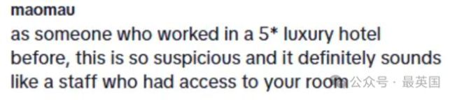 曾在五星级酒店工作过的人有话说:这事真的太可疑了,绝对是内部员工干的。因为只有酒店工作人员才能如此自由进出旅客房间。