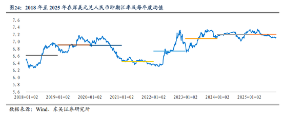 2025年不仅是过去3年贬值周期的结束,或开启新一轮升值周期,预计2026年在美元指数保持结构性弱势的情况下,经常项目顺差和证券投资资金净流入或推动人民币对美元升破7.0,若全年继续保持年化波动率3.0%-4.0%,预计2026年底人民币对美元或升向6.70-6.80;以2025年4月作为贬值的极值点,参照2019年9月至2022年3月人民币对美元升值幅度,以2025年4月作为高点,推测本轮人民币汇率或渐进升向6.40-6.50。