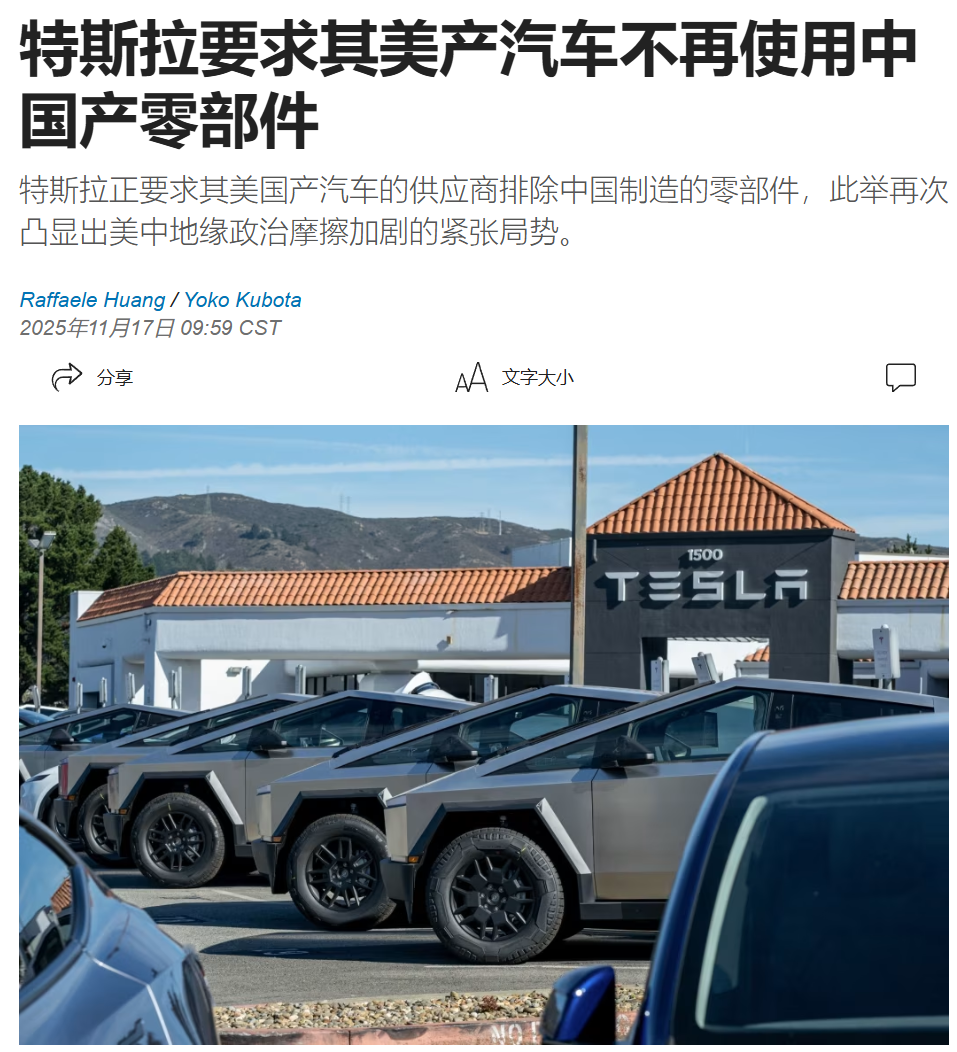 就拿特斯拉来说,目前在美国出售的车型,已经 100% 由北美工厂生产,但依然有 50% 左右的零件和中国相关。如果它能替代,早就替代了,还能等到今天?