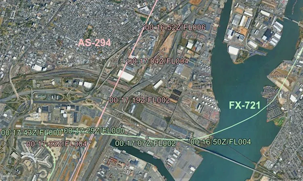 两机均处于短五边进近阶段,阿拉斯加航班下降至约250英尺高度时,空管紧急指令其复飞,机组在约200英尺高度执行复飞程序,从正在着陆的联邦快递货机上方飞越,ADS-B数据显示两机最近垂直距离仅300至325英尺(约91-99米)。