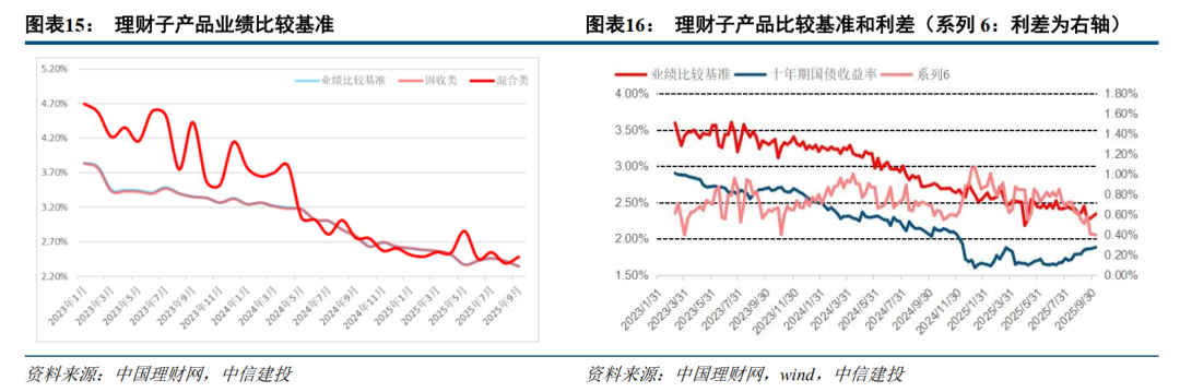 3)业绩比较基准;随着资产配置结构的调整,主要是债券和非标资产配置占比减少,而其他类资产占比回升,流动性资产占比提高2%,增厚收益的偏权益类资产占比提高3%,在这种预期下,预计2026年平均业绩比较基准会止跌企稳。