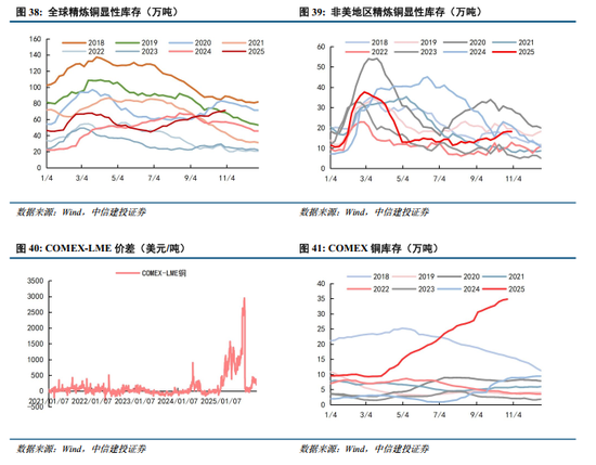 2025年特朗普威胁对进入美国的铜加征关税,导致Comex-LME价差扩大,吸引越来越多的精炼铜交仓Comex形成锁定,尽管最终宣布对铜豁免关税,但是市场仍不信任特朗普,Comex较LME的持续溢价,仍在虹吸非美区域的精炼铜库存,导致非美铜库存处于低位。库存作为供需调节蓄水池,当供给出现扰动,低库存难以响应,进而增加了铜价向上弹性。