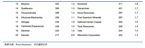 铜在地壳中平均丰度为0.007%,在所有金属中排名第17位,铜元素主要以硫化矿或氧化矿的形式广泛存在于岩石和海洋中,且分布非常分散,需要经过特殊地质作用富集才能形成可开采的矿床。全球铜矿储量分布非常集中,CR5占比56%,主要分布在智利20%、澳大利亚10%、秘鲁10%、刚果金8%与俄罗斯8%;CR10占比则高达80%。铜矿的产出集中度超过储量集中度,CR5占比62%,智利23%、刚果金15%、秘鲁11%,中国与印尼分别占比8%、5%。从储采比看,全球铜矿静态可采年限为43年,低于铝土矿的64年。2024年全球前20铜矿产量839.2万吨,占全球产出的36.6%;2024年全球前20家铜矿企业的产量为1304万吨,占全球产出的56.8%,凸显铜资源的集中。