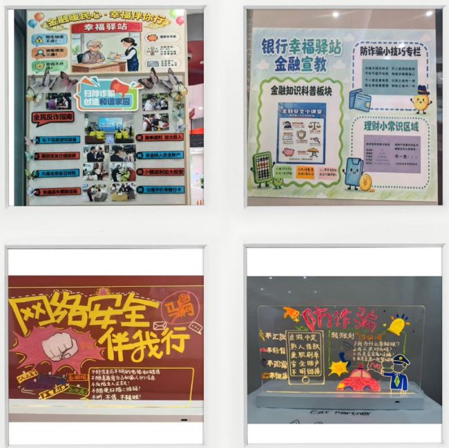 随着服务深化,“幸福驿站”的功能不断拓展:增设书籍阅读区,成为周边居民闲暇时的“精神驿站”;打造反诈宣传照片墙,记录员工走进社区、学校的服务身影;设置儿童娱乐角,方便带娃客户办理业务,营造友好氛围。