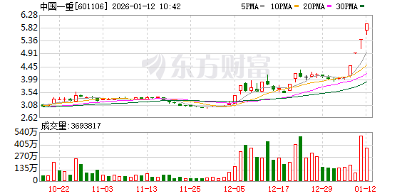 中国一重(维权)盘中涨停,已连收4个涨停板,截至9:42,该股报5.95元,换手率4.65%,成交量3.19亿股,成交金额18.62亿元,涨停板封单金额为380.60万元。连续涨停期间,该股累计上涨46.55%,累计换手率为16.02%。最新A股总市值达408.04亿元。