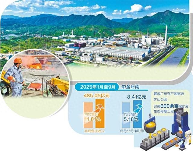 在科技创新与绿色发展双向驱动下,中金岭南迎来突破性发展:2024年,凡口矿深边部新发现铅锌金属资源量14.18万吨,广西盘龙铅锌矿深边部新增铅锌金属量3.2万吨,韶关万侯多金属矿取得了钨金属资源量1万吨的重大突破。2025年1月至9月,中金岭南实现营业收入485.05亿元,同比增长11.81%;归母净利润8.41亿元,同比增长5.18%。