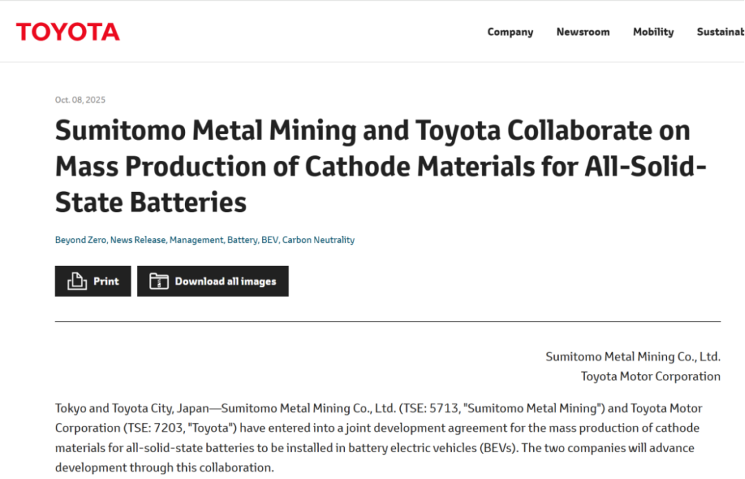 在今年召开的丰田汽车年度股东大会上,丰田执行副总裁中岛裕树(Hiroki Nakajima)明确了丰田对全固态电池的战略定位。他表示,全固态电池是丰田 “多路径战略” 的重要支柱之一。