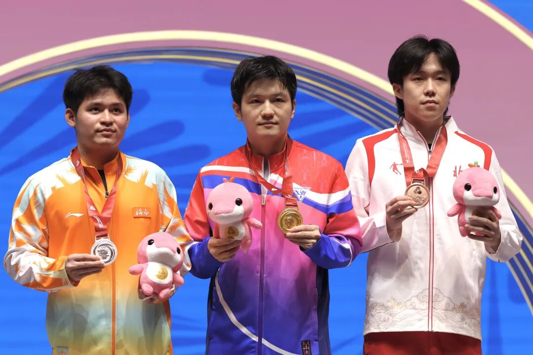 全运会乒乓球男团比赛中,大家一起摸球台 来源:见水印