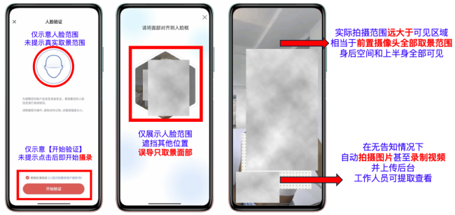 也就是说,大家在进行人脸识别验证的时候,不论人脸框内还是框外,只要是在摄像头范围内的画面,全部都会被拍到。