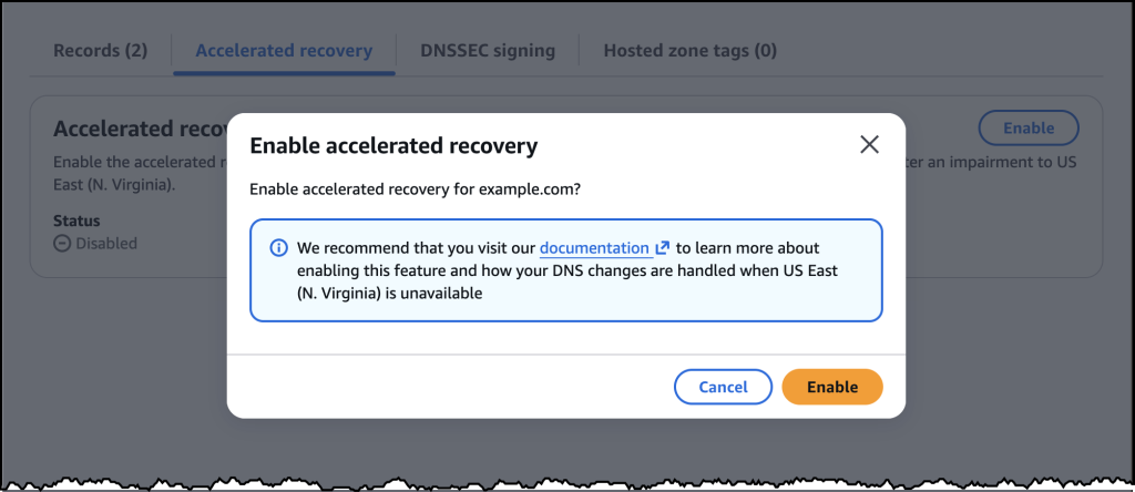 当然这项服务本身是作为备用服务使用的,亚马逊没准备额外收费,适用于 Amazon Route 53 公共托管区域的加速恢复功能已经广泛可用,并且是免费使用的,但私有托管区域不支持此功能。