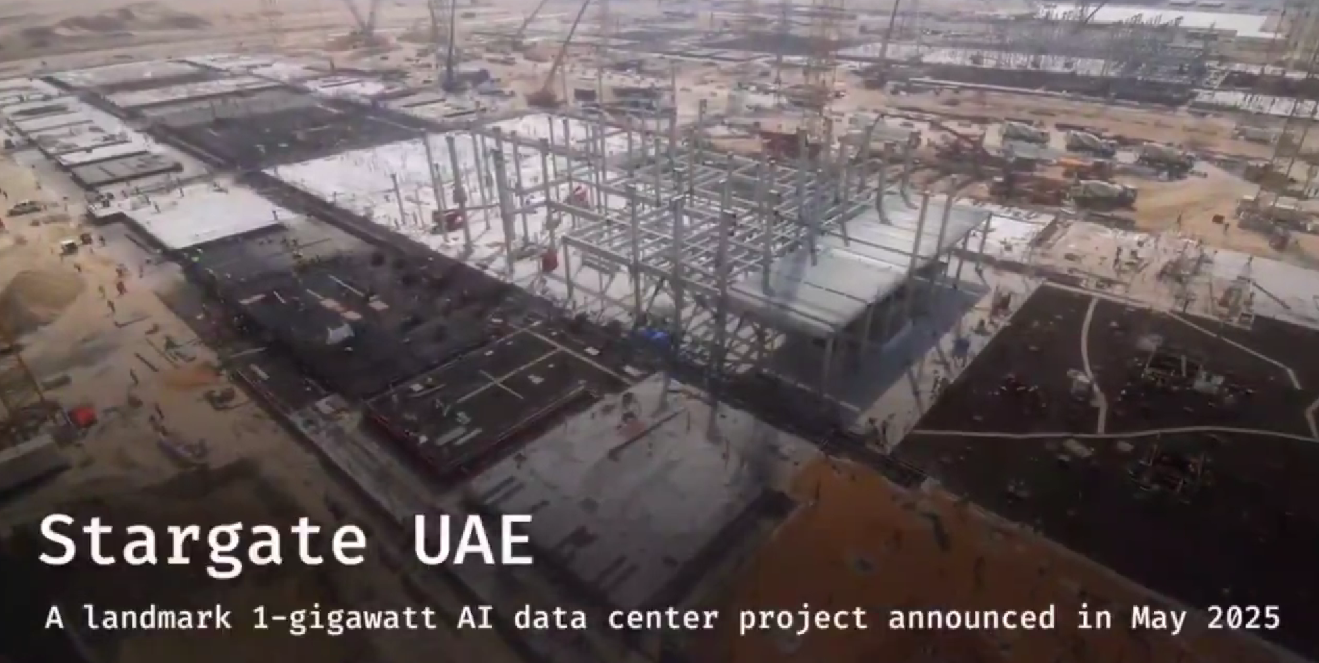 随后画面切换为夜视视角,这座装机容量达1GW的星际之门AI数据中心的完整轮廓与全貌清晰可见。作为OpenAI的核心算力基建,该项目也是美国本土外规模最大、投资最高的AI数据中心之一。