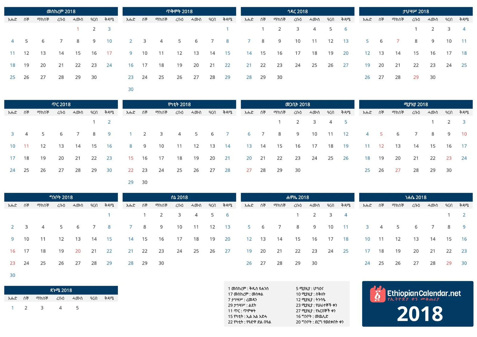 同样都是太阳历,但是埃塞俄比亚一年有13个月,其中前12个月都是30天,第13个月平年5天、闰年6天。
