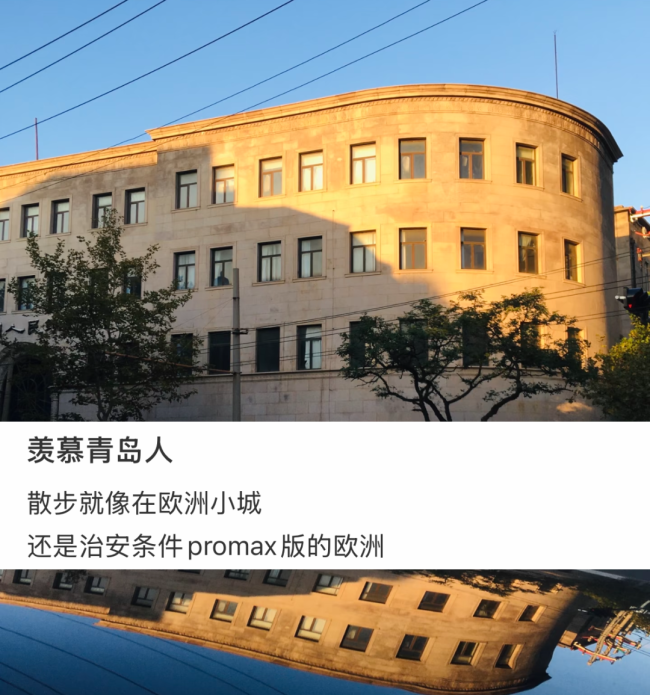 市南市北区的白墙红瓦成了高配版布拉格,崂山的海边休闲广场又幻视意大利,小鱼山随便一个街景都像误入了韩国偶像剧……