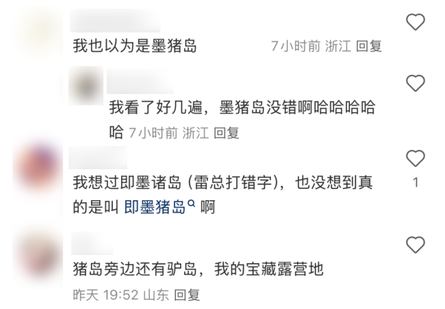 网友们这才惊呼:原来北方还藏着这么个露营天堂!可惜「猪岛」名字过于实在,让无数人看岔了,评论区有人直接断句成「墨猪岛」。