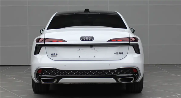 尾部方面,该车同样采用狭长的尾灯组,不过灯组下方加入亮黑的导流槽装饰。后保险杠区域则加入了蜂窝样式的黑色饰件,四环车标内部还有黑色涂装。