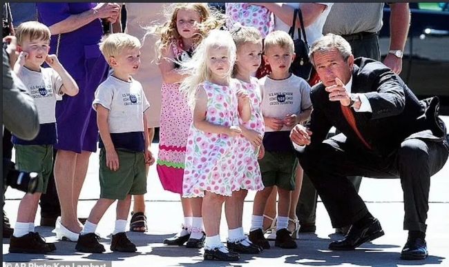 (小布什接见七胞胎)