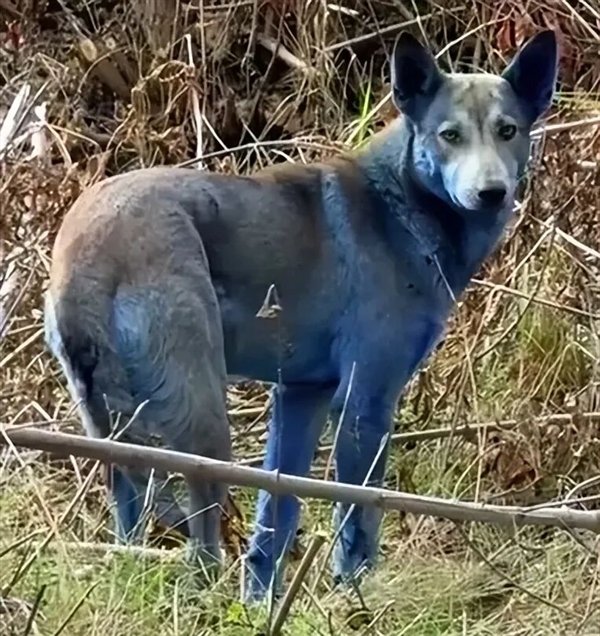 视频显示,这些狗的毛发呈现均匀的亮蓝色,皮肤无明显异常,且行为活跃健康,而当地居民证实,一周前这些狗的毛色仍为正常的棕黄色。