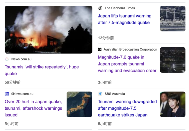 澳洲气象局称,日本地震不会对澳洲海岸造成海啸风险,但会继续监测相关数据。