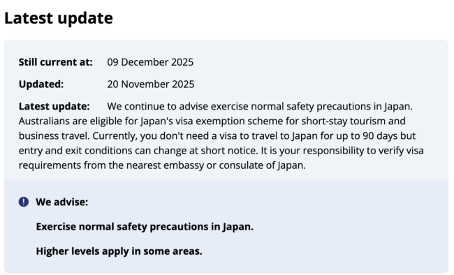 提醒身在日本的澳洲公民