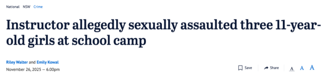 三名年仅11岁的女童在参加学校露营时,竟遭营地指导员性侵!