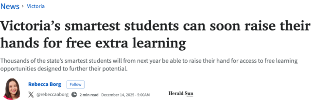 要求维州政府公布公立学校所有资优教育项目清单,并为资优生创造与同辈交流的机会。