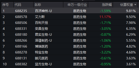 【科创创新药ETF汇添富(589120)标的指数前十大成分股】