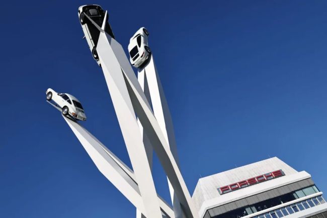 ▲德国斯图加特,保时捷祖文豪森总部的汽车装置 图/视觉中国