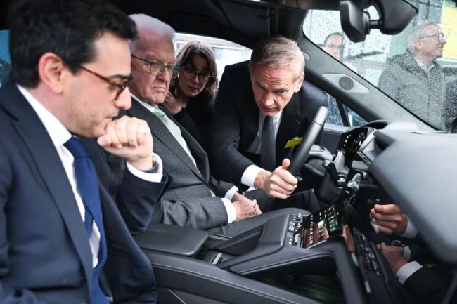 ▲2025年11月26日,德国巴登-符腾堡州斯图加特,欧盟委员会执行副主席斯特凡纳·塞茹尔内(左)和巴登-符腾堡州州长温弗里德·克雷奇曼(中)在参加汽车工业战略对话前,听取大众汽车集团CEO、保时捷掌门人奥博穆(右)介绍一辆保时捷汽车 图/视觉中国