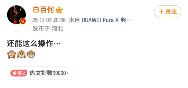 风波的起点始于11月3日,距离电影节颁奖还有两天。主演影片《春树》入围主竞赛单元的白百何,在微博抛出一句“还能这么操作…”,配着捂眼、捂耳、捂嘴的“三不”表情。