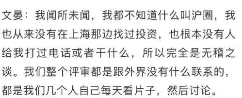 文晏则在接受新浪采访时全盘否认争议,称“不知道什么是沪圈,与《春树》片方不熟”。