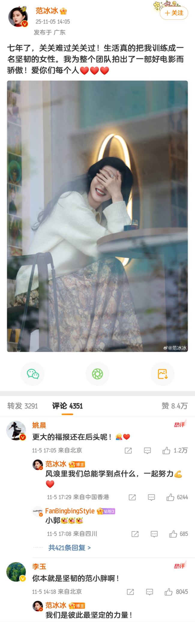 而在颁奖前,范冰冰曾发微博感慨“七年了,关关难过关关过”,似乎也有言外之意。导演李玉与演员姚晨随即下场力挺,让她遭遇不公的猜测甚嚣尘上。