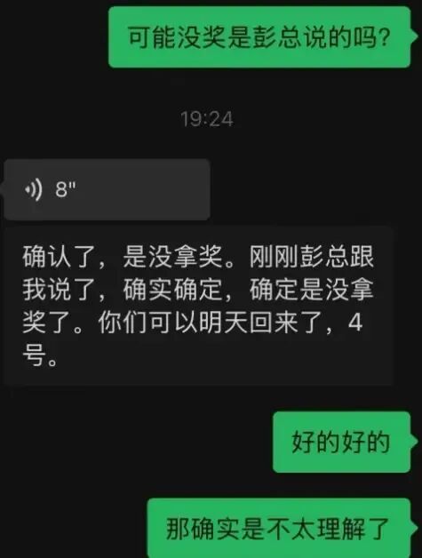 有人晒出聊天截图,说《春树》的制片人彭瑾跟白百何说没拿到奖让她提前回国。