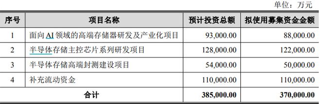 江波龙12月的公告显示,公司拟定增募资不超过37亿元用于面向AI领域的高端存储器研发及产业化项目、半导体存储主控芯片系列研发项目、半导体存储高端封测建设项目及补充流动资金。